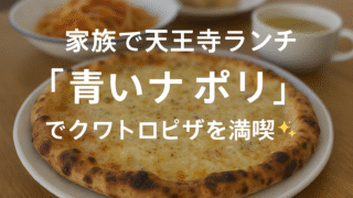 天王寺の人気イタリアン「青いナポリ」で家族でランチ🍕こーパパ念願のクワトロピザにゆっきーはおしゃれなキッズプレート!子連れでも安心して過ごせるおしゃれなランチタイムを紹介します